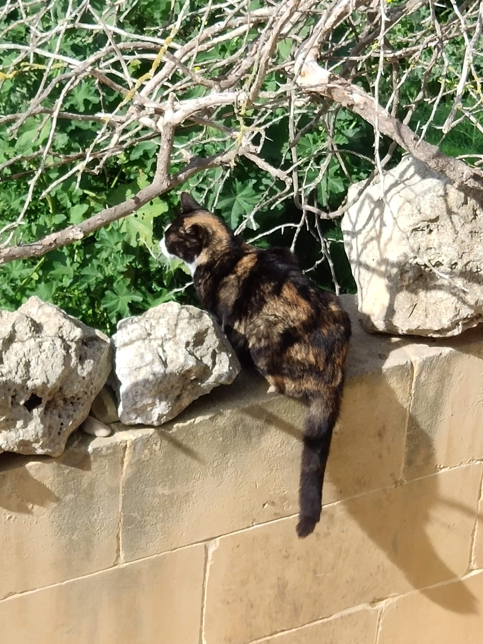 Twilight was another female feral Visiting Cat but, unlike Sniffly and Visitor, she came from the fields on the other side of the garden. For a female, she roamed over quite a large patch, from the first road of the next village where there was a colony of cats, through the fields to The Cat’s Garden, also spending time in the vineyards on the other side of the road.