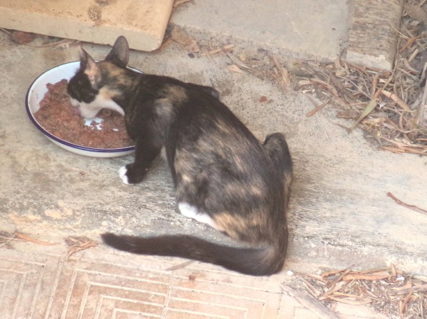Now she had discovered the food bowls in the drive and front path, she never needed to go hungry again.