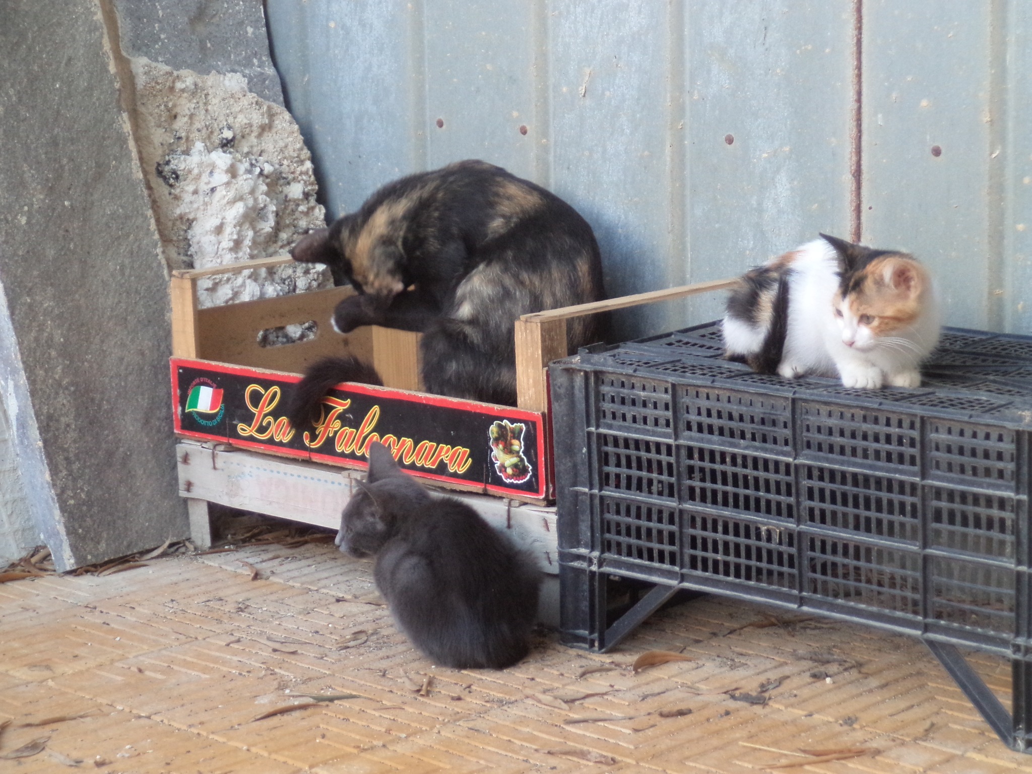 She plucked up the courage to start visiting when the humans were around (although she was still not friendly), and that autumn she brought her kittens from the fields to the drive to introduce them to solid food.