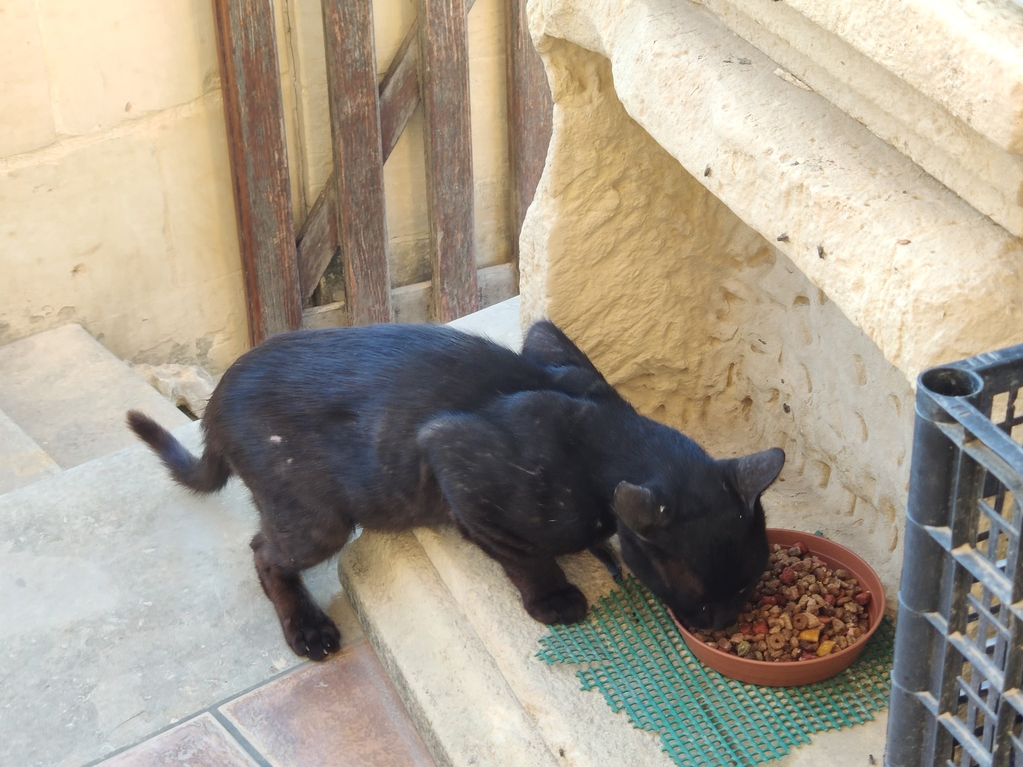 Of these males, Thundercat was the oldest and most likely to succeed. He had come from a garden across the fields where cats were also fed – the same garden as Visitor, Sniffly and Ghost Cats, Sabiħa and BBC had come from. Thundercat was not friendly per se but as time passed, he became accustomed to being around us although we were always careful of how we approached him as he was partially sighted in his left eye and sometimes could be caught off guard.