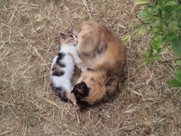 And, just so we knew that The Cat’s life didn’t consist solely of napping under the fruit trees or relaxing with her adult family, she took a dislike to Phantom, one of the feral cats from the fields opposite, and proved to the humans that, despite her age and health problems, The Cat could still chase a younger female out of the garden at top speed, should she want to.