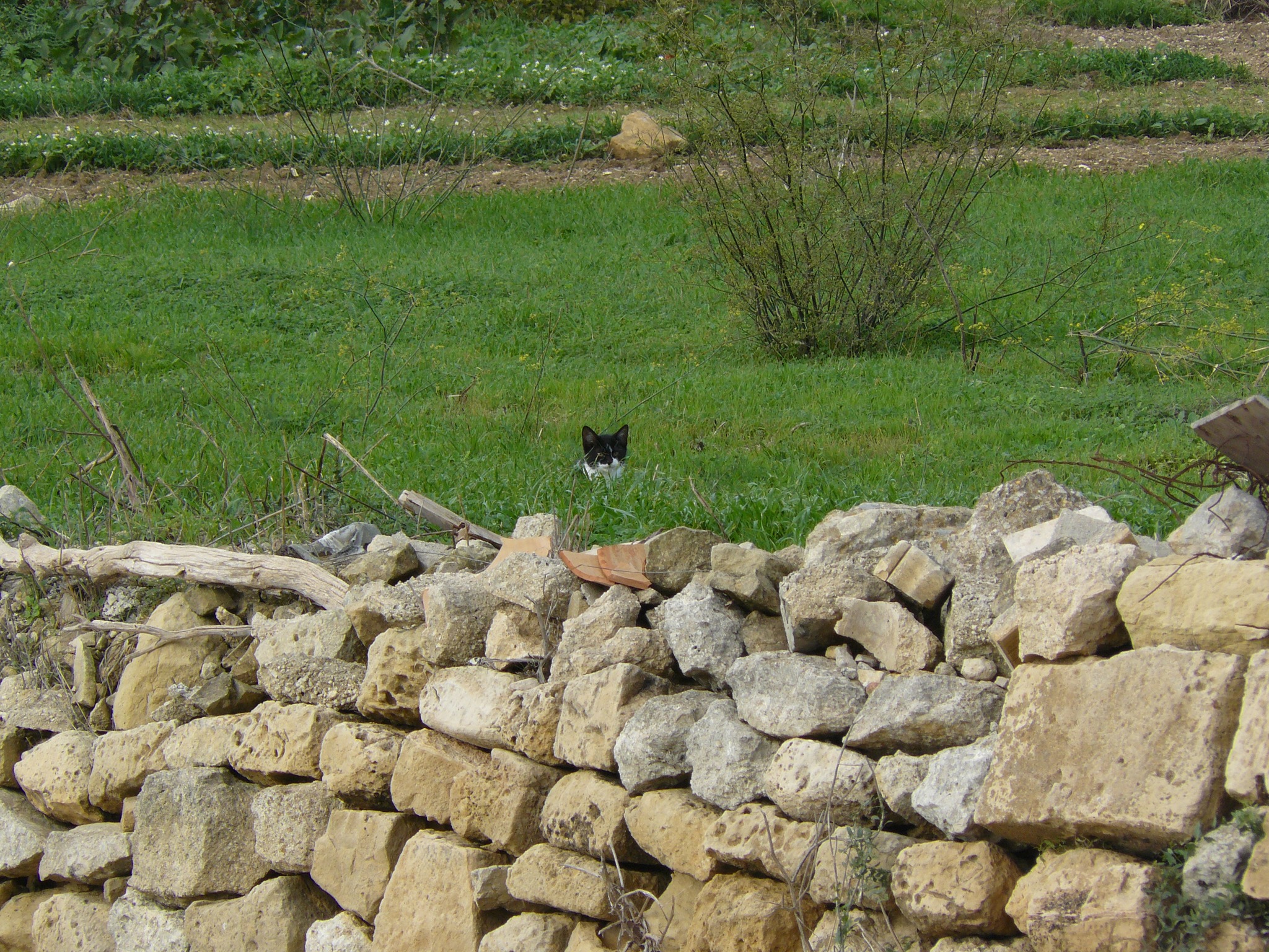 These two groupings of Garden Family and Visiting Cats did not mean that there was a divide between these cats, or that their areas were specific to them. Although the garden was the Garden Family’s base, they all spent time in the fields too (as you can see from the header photo which shows The Cat’s son, Blackfur, out in the fields), and were familiar with them. And, conversely, it was inevitable that some of the Visiting Cats would pass through the garden and occasionally spend some time there.