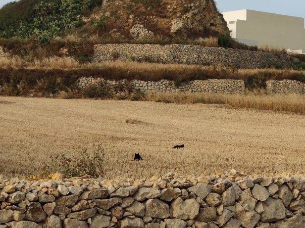 This photo shows Muffin and Kiwi (probably!) in the fields on the opposite side of the road. This was very much their home turf, as it were, their territory, their land.