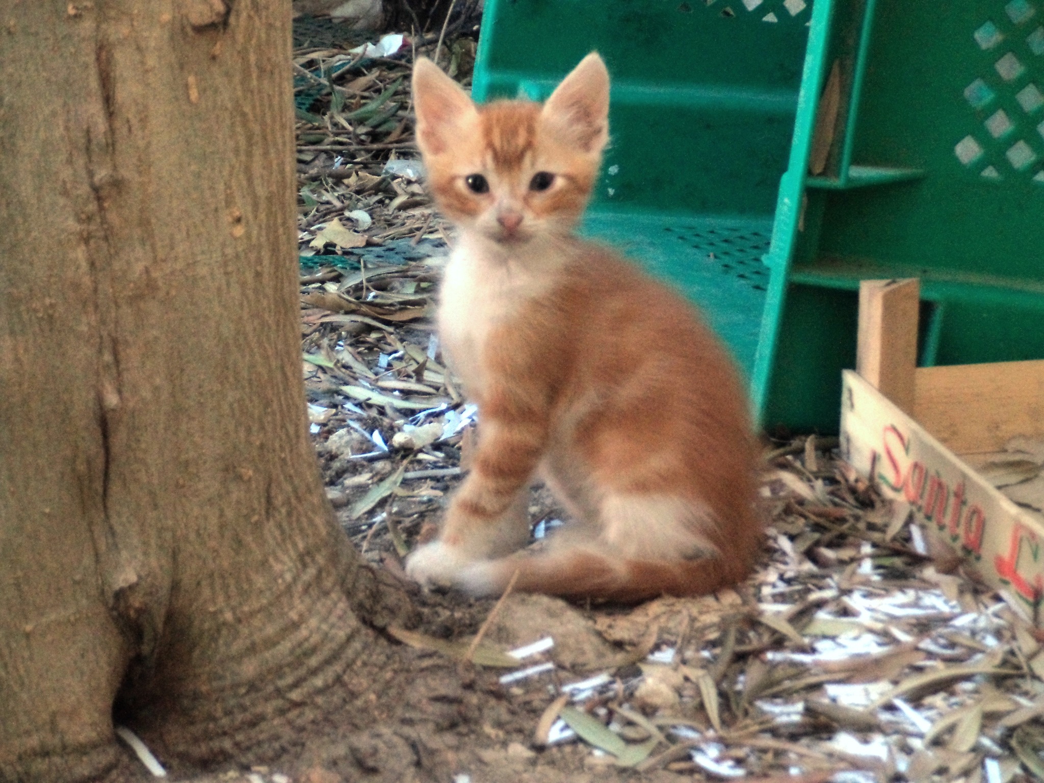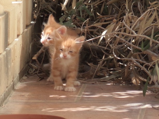 The Cat was an experienced mother and her kittens were bigger and stronger. Her two sons, Orangiboom and Tippex, were the first to emerge from the nest when they lived on the terrace for two weeks under a pile of branches. Their smaller littermates would follow, one by one, as they became big and strong enough.