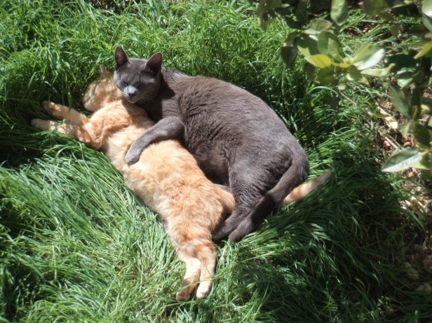 Stardust’s way of thanking The Cat’s family for accepting him was to repay them in snuggles. Greyfur was not a cat who sought out cuddle-buddies, but it seemed he could not resist Stardust when it came to sharing a nap under the trees.