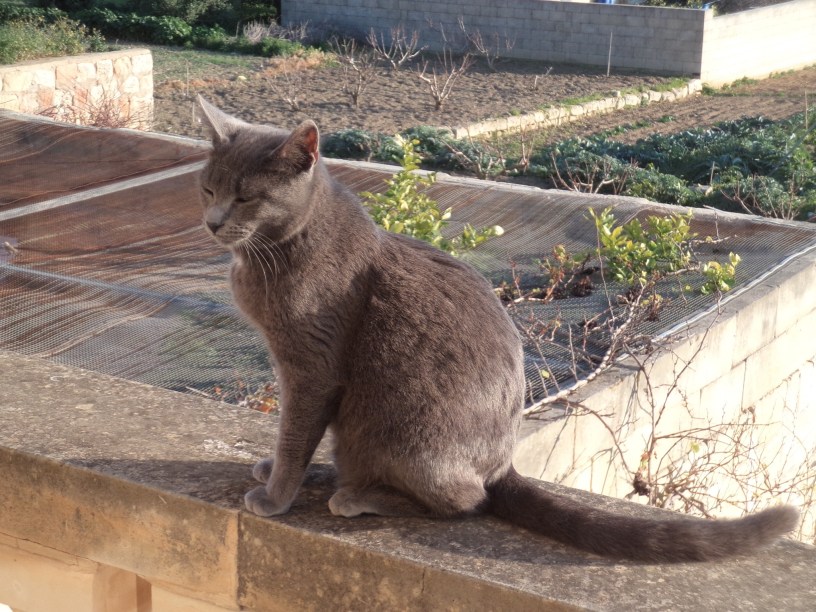 Stardust and Ariel had been closely bonded, and Stardust was devastated at the loss of his sister. He became so morose and withdrawn that we feared he would fade away and join Ariel, so we took the chance on taking him into the garden, hoping that The Cat would not take against him as she had against Kiwi.