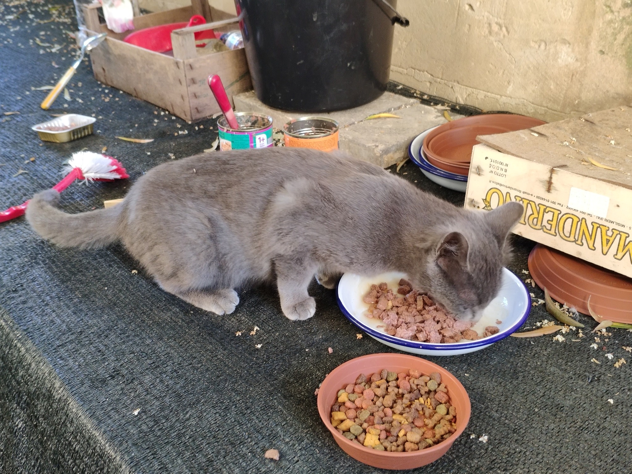 We wondered whether there would be any more grey cats – you never know with feral cats, as you have no idea where they roam and what other cats they meet. And, as it happened, another grey kitten did come along, but this time from Twilight, a dark tortoiseshell feral female, who lived in the fields. Twilight brought her family to the drive for weaning and, when they were independent, she returned to live in the fields.