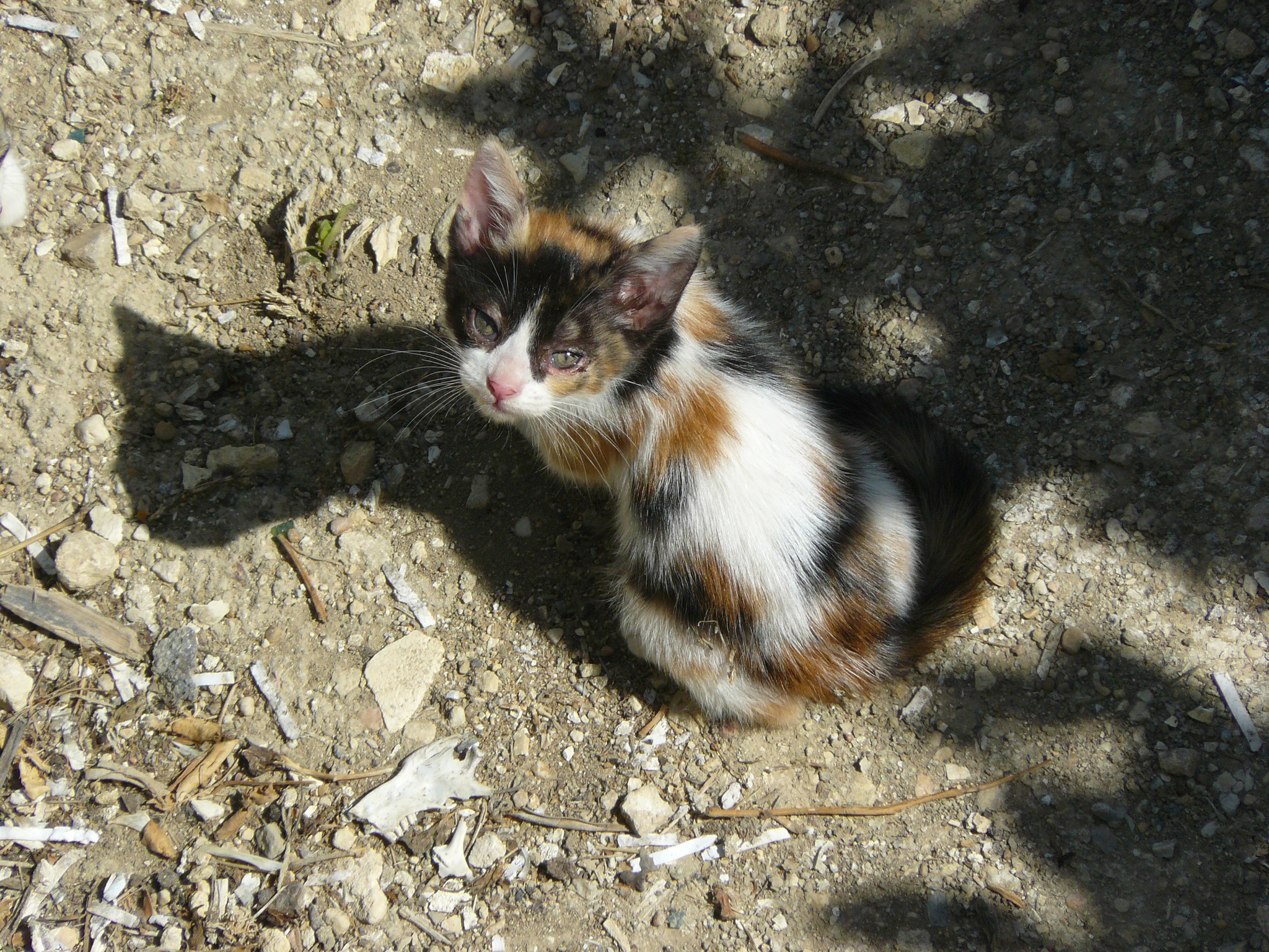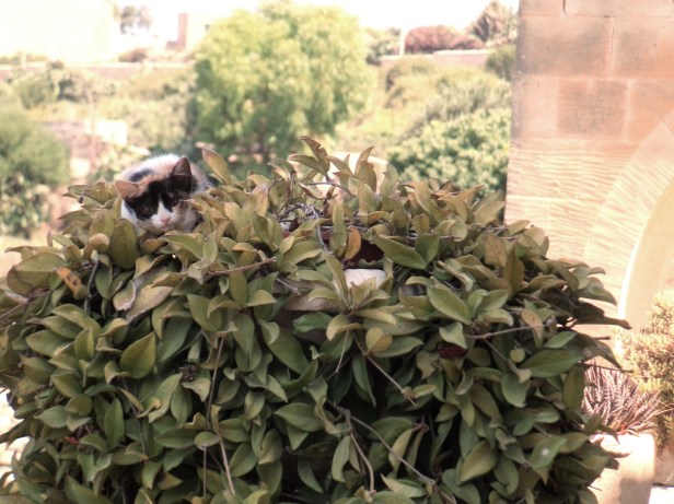 The Cat brought the kittens to the garden for weaning. Apart from solid food, there was a lot that was different from the fields, not least the humans who looked out over the garden from the first floor terrace and came to the garden to put out the food. Ratchet was a curious girl; she was not phased by the humans, so long as we were at a safe distance.
