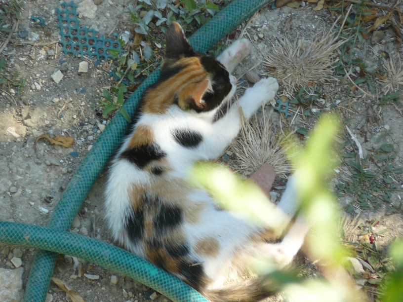 But of course Sprocket and Pedal had a sister, a littermate, Ratchet, who is not featured as often because she lived only a few months. She was part of the happy trio of kittens spending their time between the fields and the garden; she did all the usual kitten things and, apart from the fact that she seemed to spend more time sleeping than Sprocket and Pedal, she seemed perfectly fine. It was only during her last day when she was just fading away that it was obvious that there was something wrong. Maybe she wasn’t joining in kitten games as much for a few days, maybe she was napping more and playing less – these are all things that can be spotted in retrospect, but at the time don’t jump out at you.