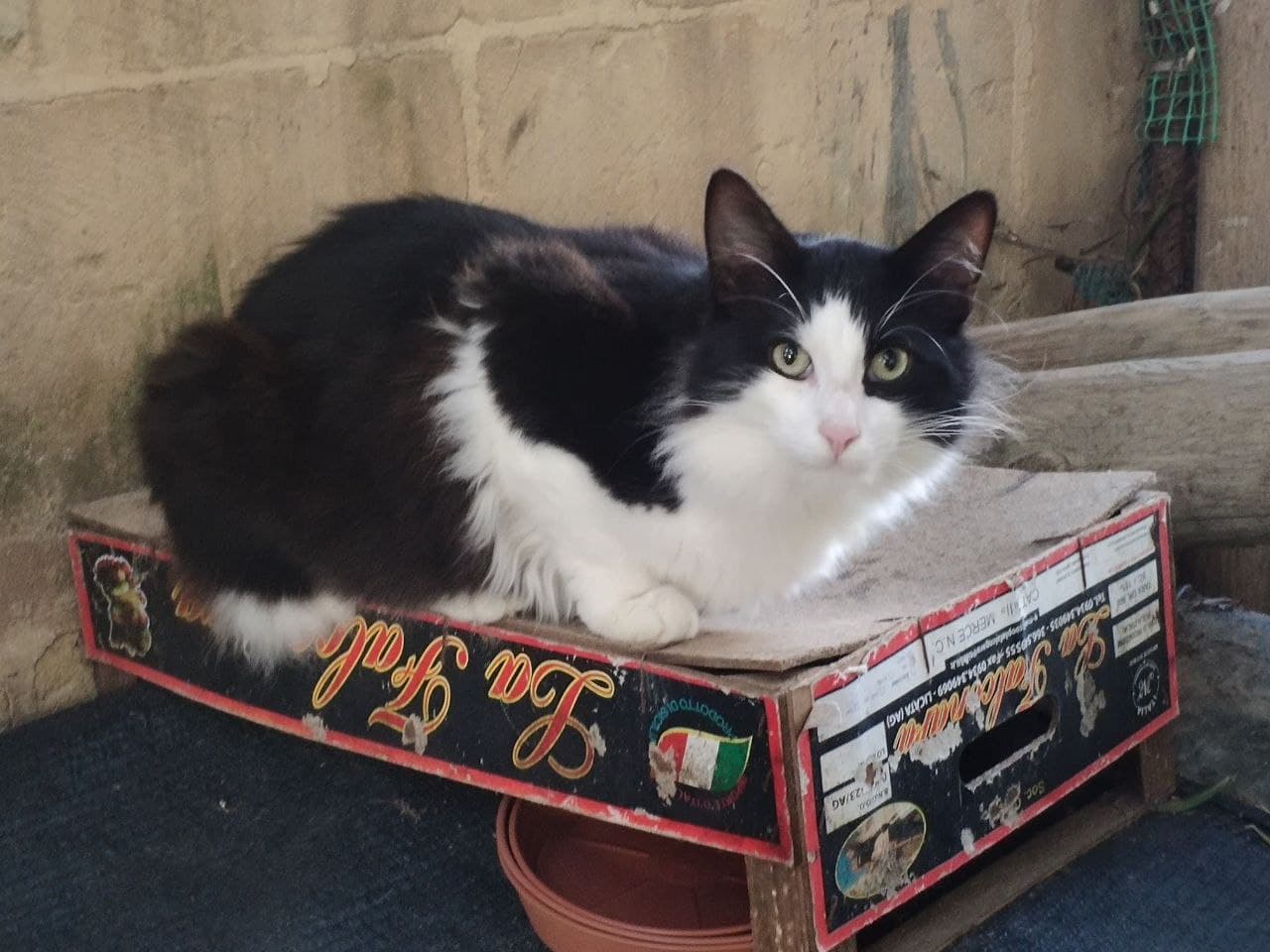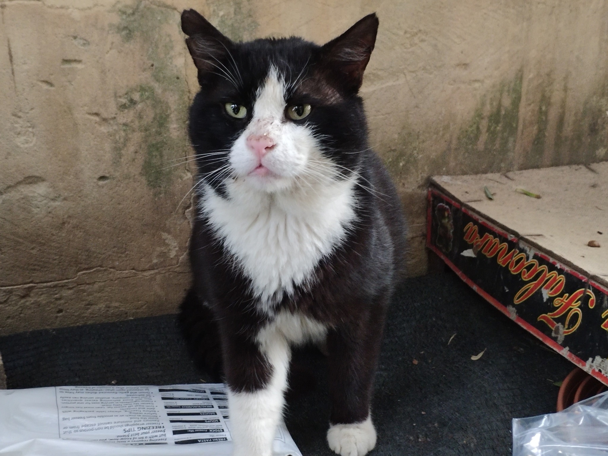 And Checkers was probably the son of BBC (Big Black Cat) as he was the only one of the litter to have a fluffy coat and BBC’s plume of a tail. Although Checkers was very wary, he had a look in his eye as though he really wanted to be friendly but just couldn’t bring himself to be.