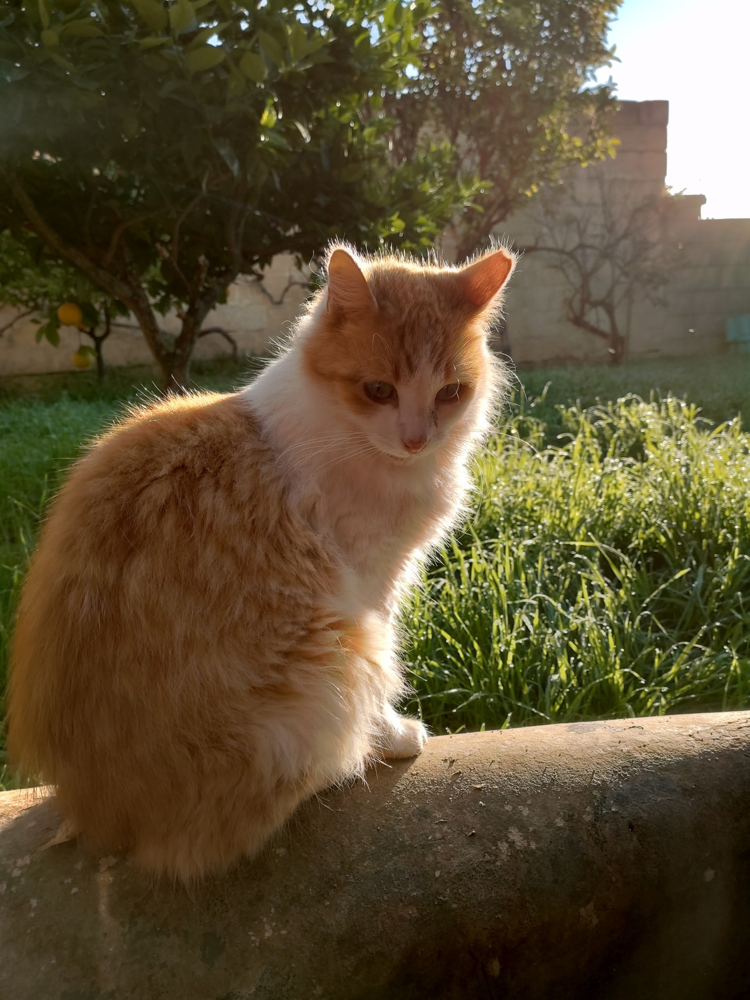 The next was Gypsy, another adult, who arrived around the time of the pandemic. Gypsy had a more feminine appearance and delicate frame, and it was not a great surprise to discover she was female. Gypsy had a lovely plume of a tail when she arrived but she disappeared for a few days and returned with a damaged tail which then fell off, leaving her with a stump. Luckily she managed fine. Gypsy is also shown in the header photo.