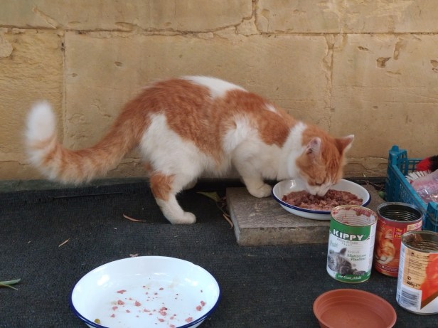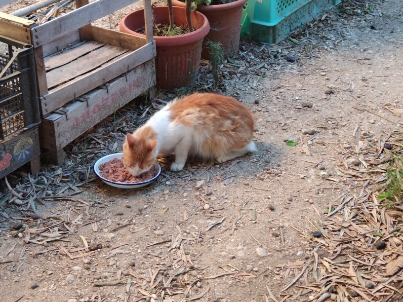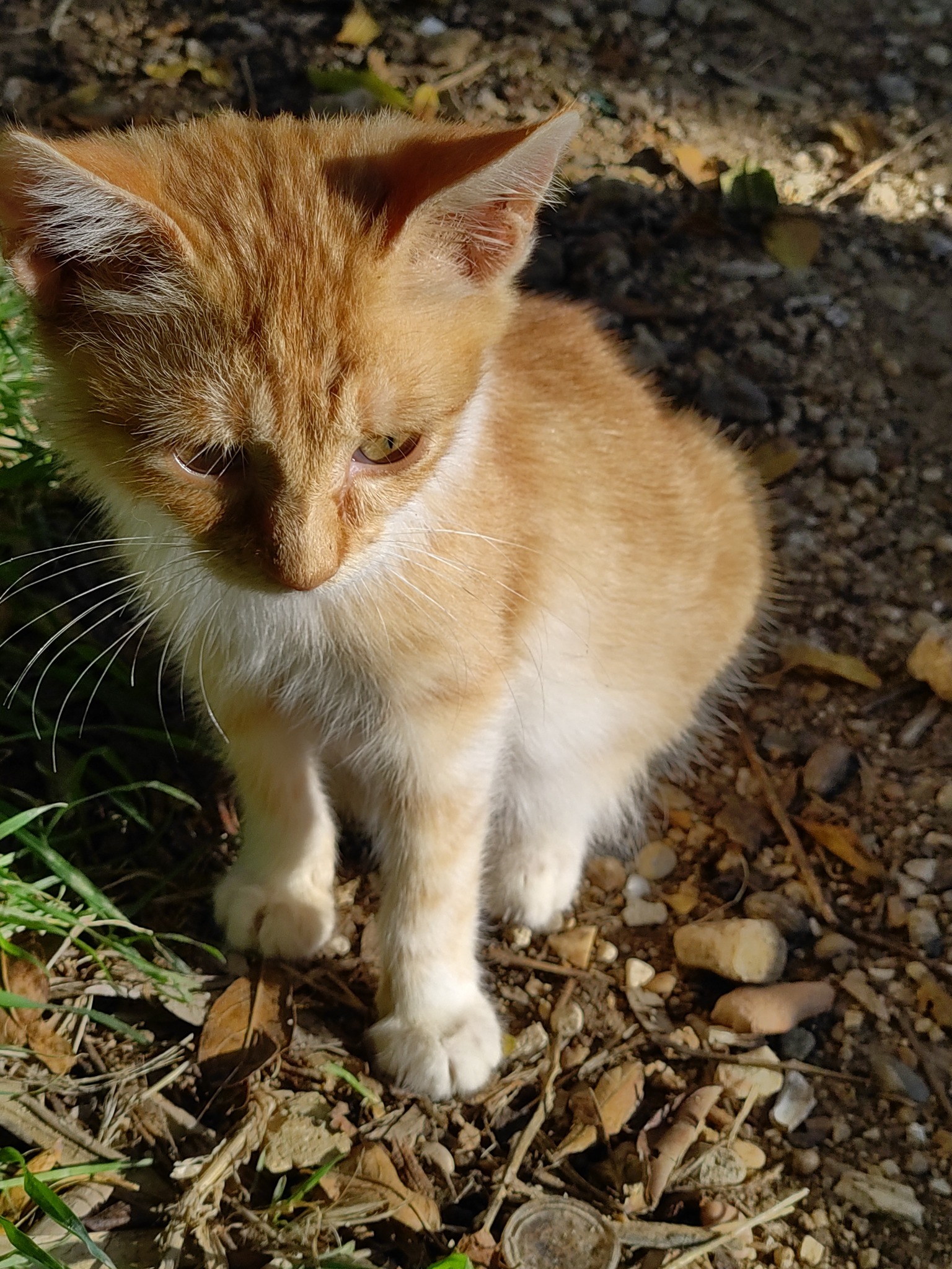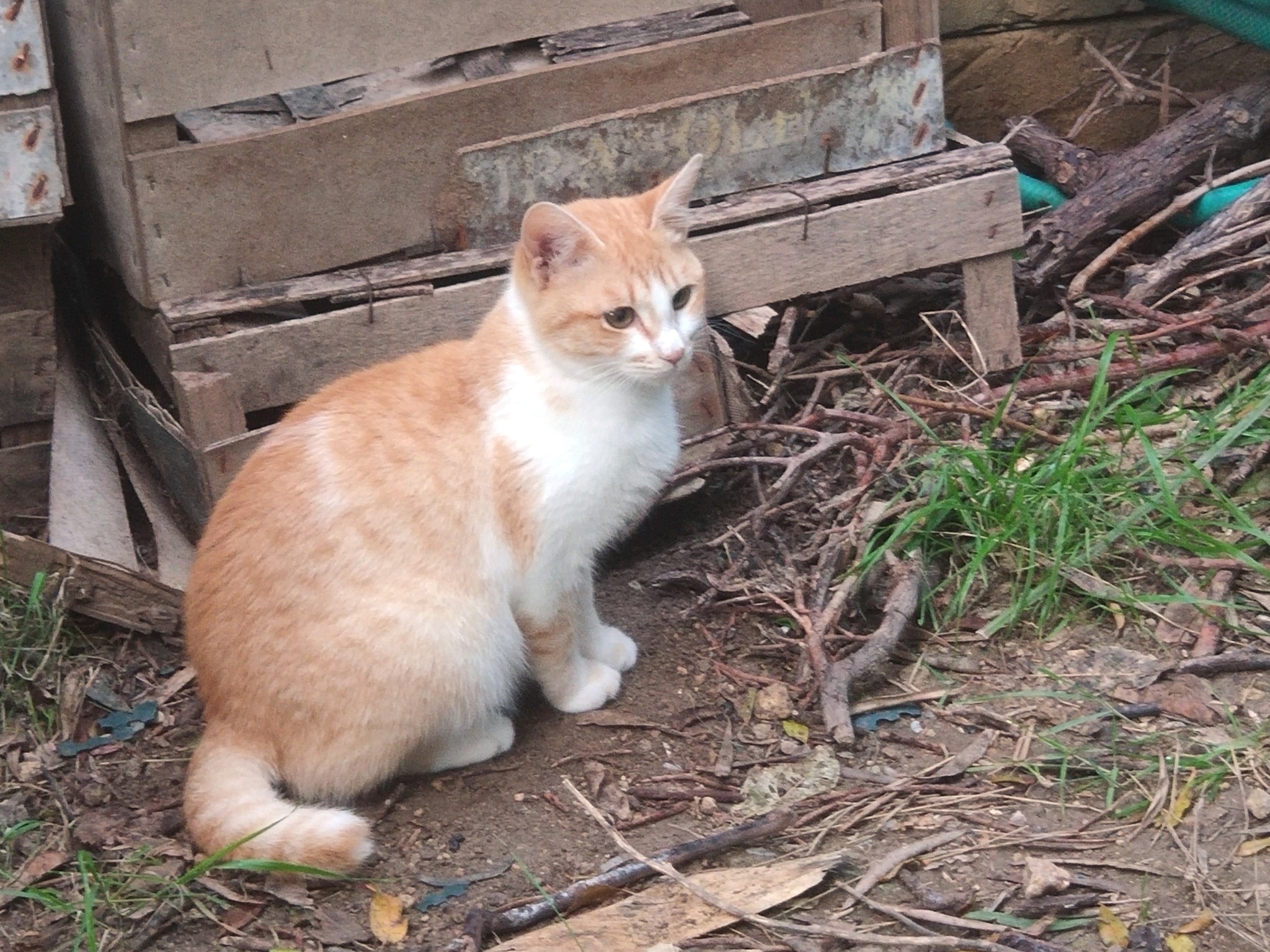 There were a number of orange cats who came to eat who were very wary and didn’t come close enough for us to find out whether they were male or female, and likewise with visiting kittens. But, of the cats who were either members of the Garden Family or part of the Visiting Cats group and were friendly (or at least accustomed to being around humans), there were four ginger-and-white cats who we know for sure were female.