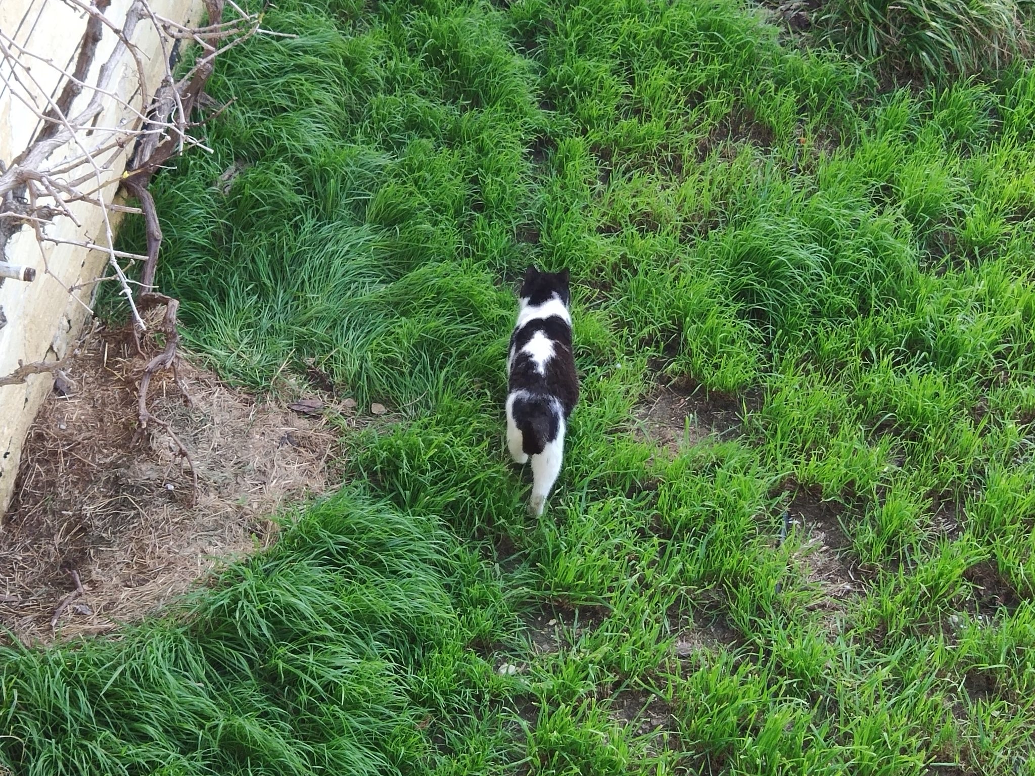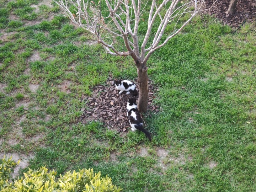 Here’s NVQ walking through the garden – this photo was taken from the first floor terrace, and the pattern on his back is almost identical to Moonstruck’s.