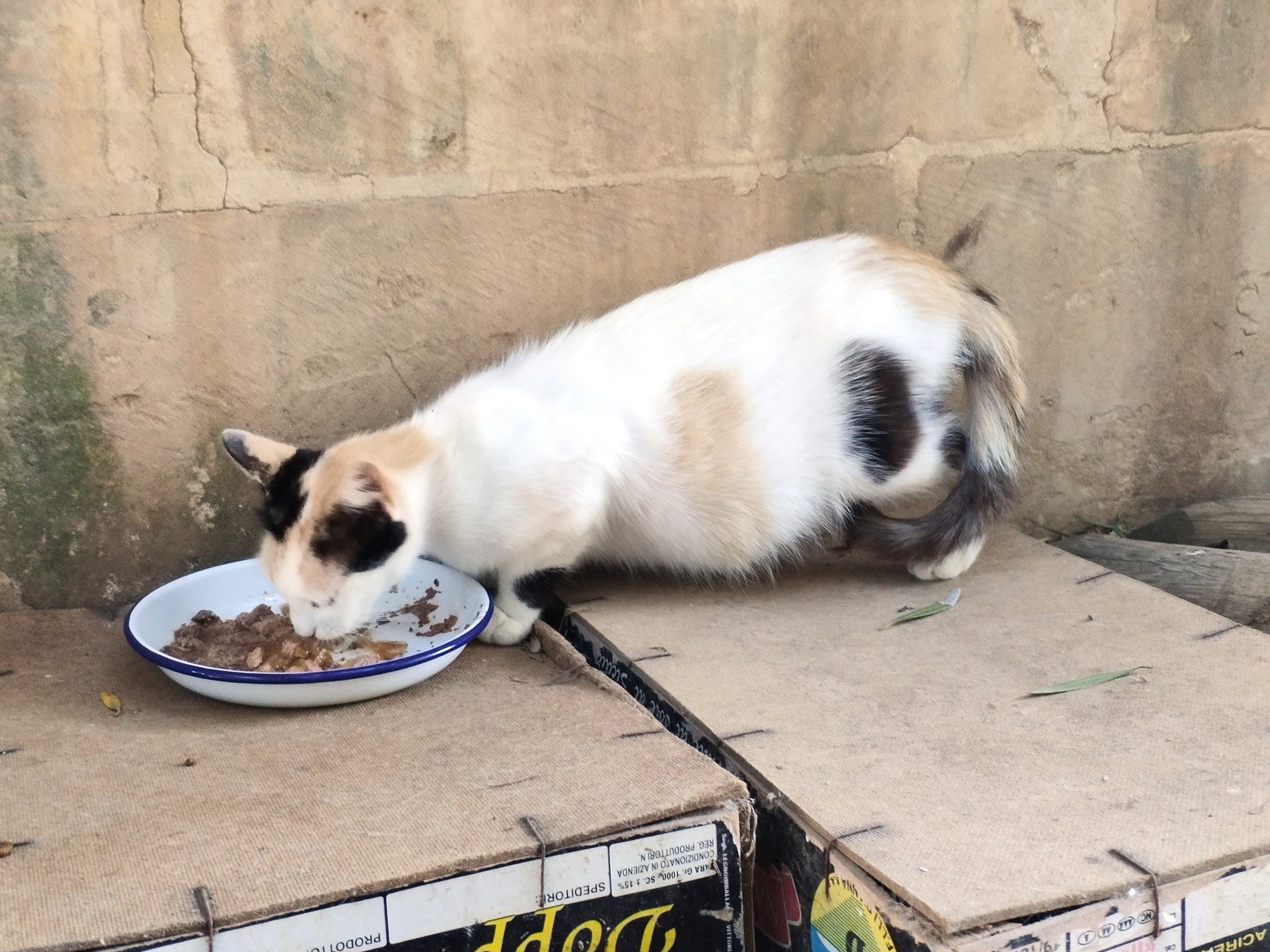 An example of the first was Moonstruck. Born to She-ba in the fields, Moonstruck and siblings Sundown and Cosmos came to the garden for weaning. Moonstruck was black and white and there really can be no doubt that she was the daughter of neighbourhood alpha-male NVQ, with that trademark white patch in the middle of her back. (Cameo appearance at the food bowl is courtesy of Sherpa.)
