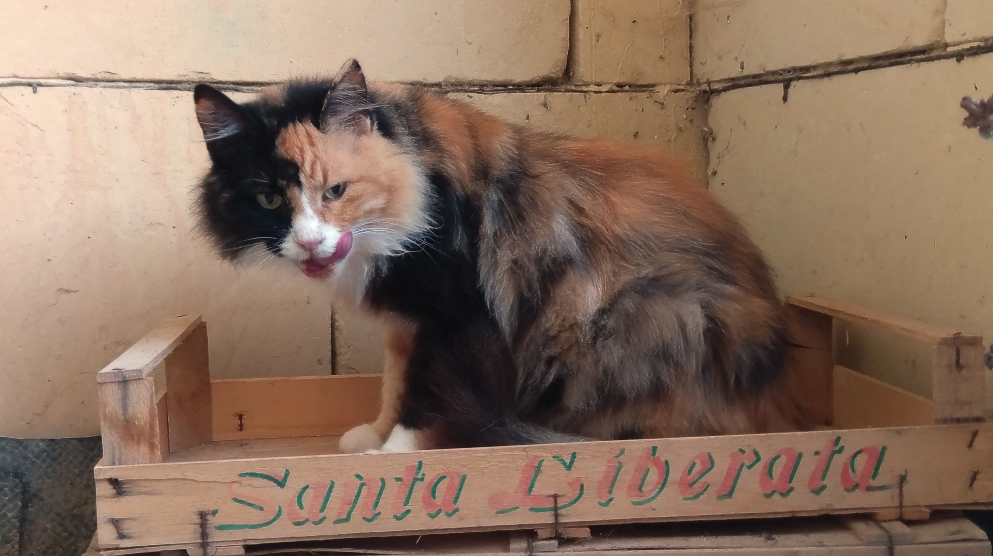 2019 – as matriarch, The Cat had priority when it came to sitting in the first sun of the morning on the water tank on the terrace. Her family would often gather around her, sometimes with other cats too, but she was always the mainstay of the group.