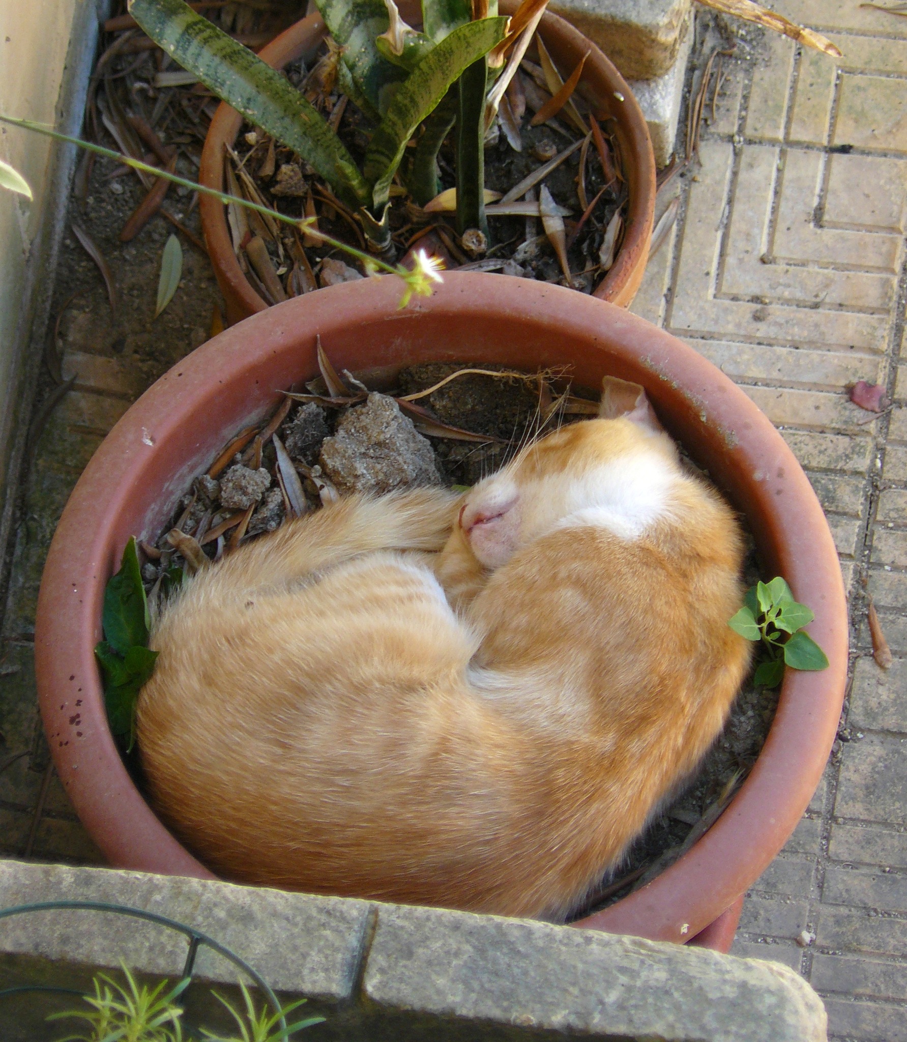 His loyalty was repaid by his mother who sought out his company at siesta and meal time. They napped close to each other (The Cat always comfortingly higher that her lowly son), and shared a bowl. The Cat also found her Number One Son useful when she needed somewhere to rest her head in the garden. Ana never complained; he was loyal and patient.