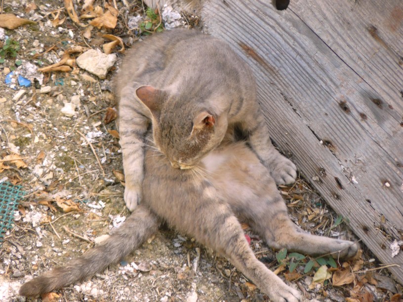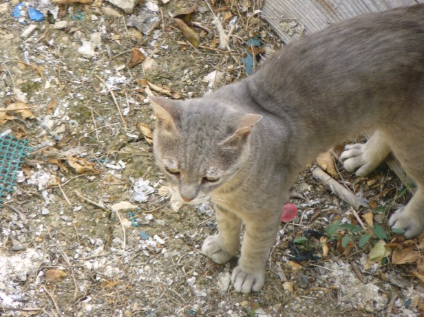 But staring was obviously not all that was on Mr Grey’s mind. He was a big alpha-male, and he had plans. Firstly, he wished to oust The Cat’s son Ana Half-Tail, and then take over the garden and claim The Cat as his own. This led to many bitter fights between Mr Grey and Ana in the garden and the drive. They were well-matched and both determined but, tiring of the constant battles and with neither of them triumphing over the other, they made their exits in different directions, making way for a new alpha-male to move into the area.