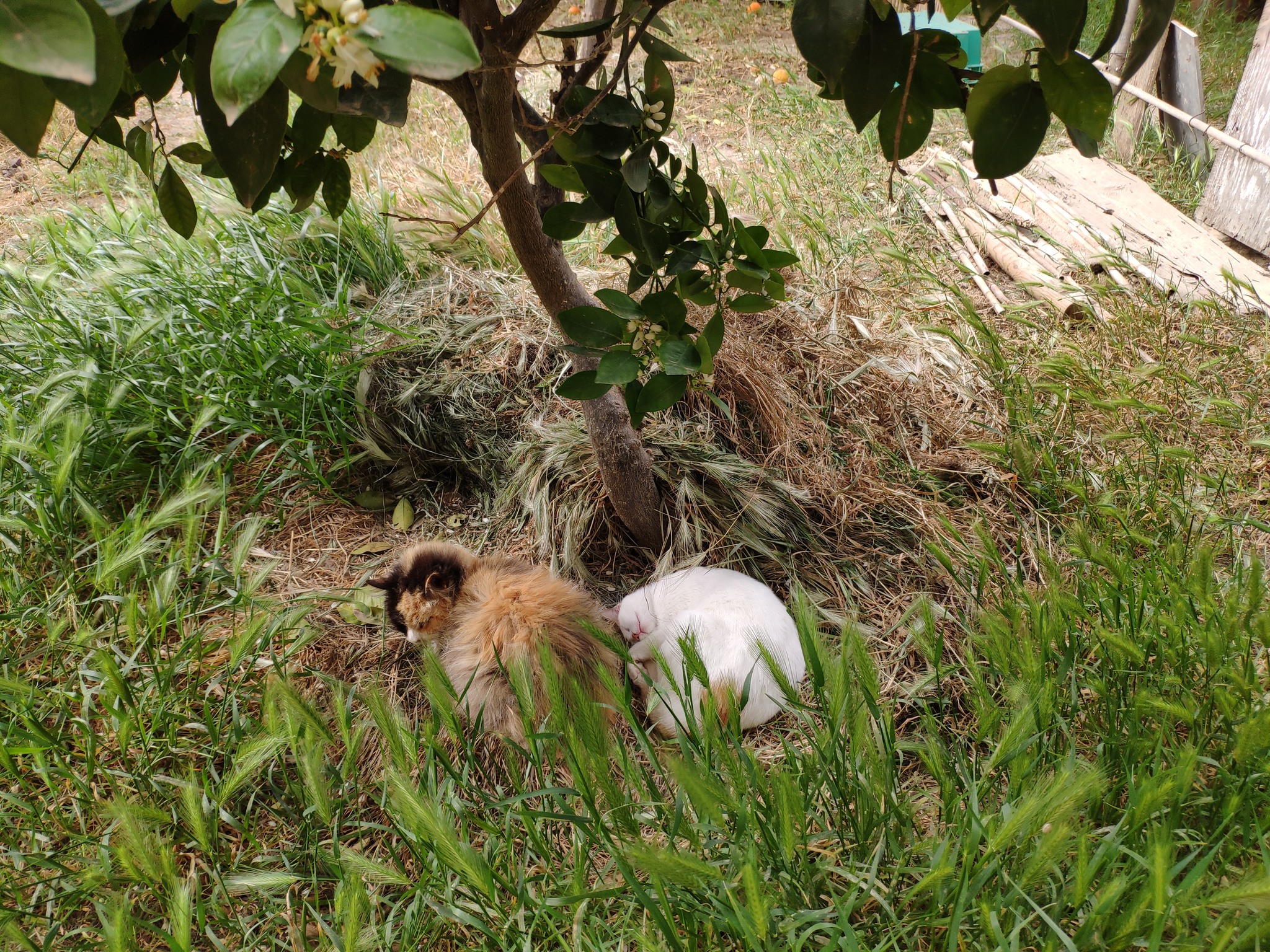 The last photo was taken only a few weeks before we lost The Cat. It shows her and her grand-daughter Calypso napping under a citrus tree. Of all her grand-kittens, Calypso (who had a bit of a wild-child reputation) was the closest to her and they were often spotted together.