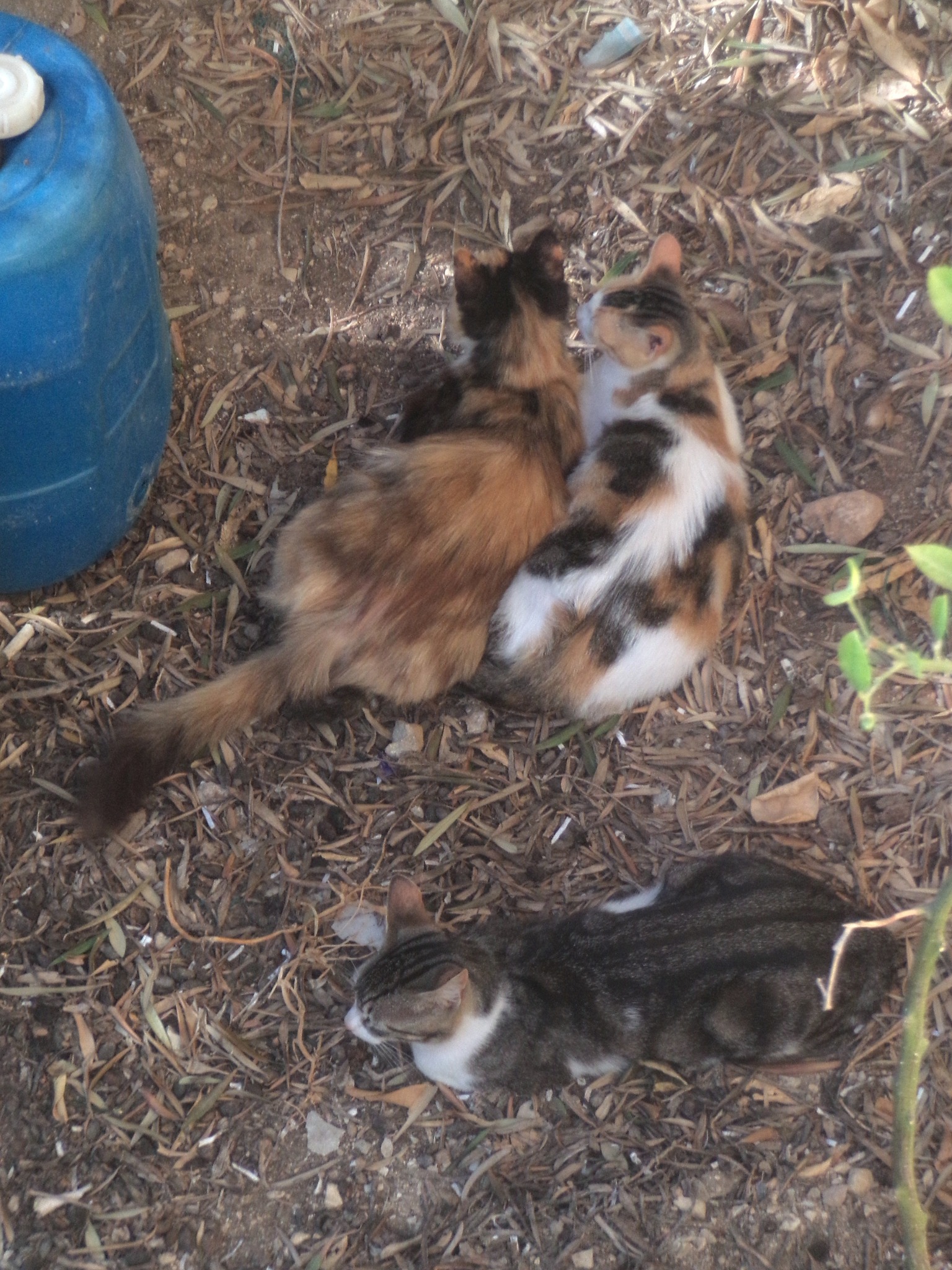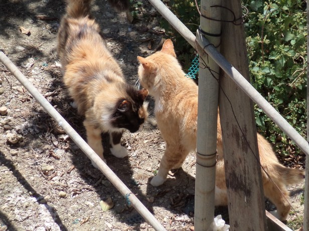 The next photo show The Cat and her daughter Sprocket taking a short break from looking after their kittens. They had both had their litters within a few days of each other and combined them into one colony, cared for by both mothers. Pedal was their guardian and protector.