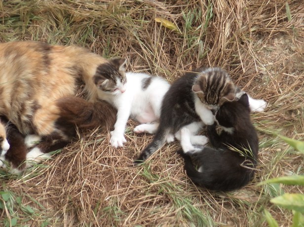 A glimpse into The Cat’s life in the garden during April shows The Cat herself either looking after kittens or relaxing. There was a relaxed atmosphere in the garden; the cats were enjoying the gentle warmth of the spring sunshine before the summer arrived with its hot weather.