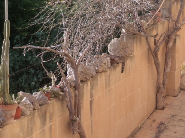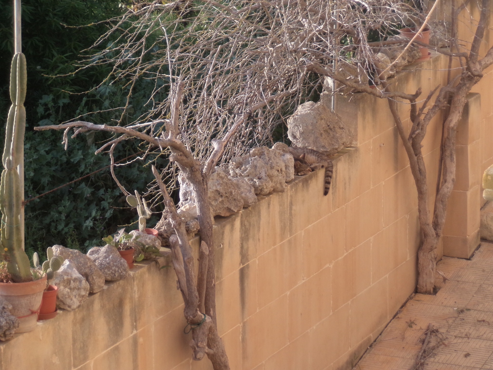 A couple of days later, Dinky’s curiosity got the better of him and he decided to revisit the garden, although this time he made sure that Mr Grey was not there. But The Cat was there, and she was deeply unimpressed. She could move like the wind when she wanted to, and she did not waste one moment in chasing Dinky out of the garden. Why he didn’t just go back into the drive is a mystery; he would have been safe there. Instead, he headed in panic up the olive tree, higher and higher, until he ran out of tree and had no option but to cling to the very top branch where he swayed precariously from side to side in the strong winds, while The Cat sat only a few feet beneath on the high wall, counting the minutes until the imposter must surely part company with his twig.