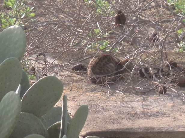 Luckily for Dinky, The Cat’s patience ran out before his twig broke, and he was able to descend, dignity intact, and go back to the drive where we continued to feed him.