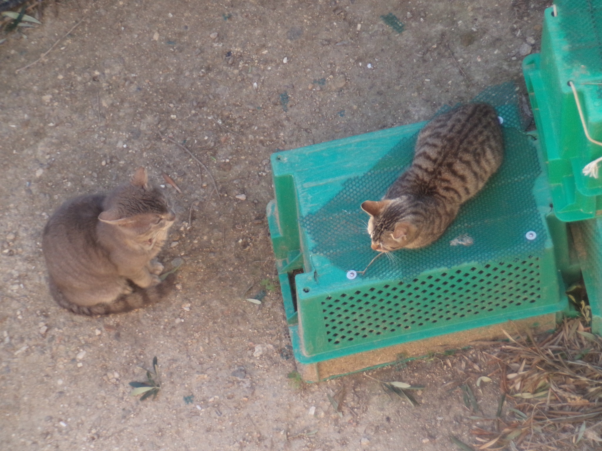 But of course, Dinky was naturally curious and it was only a matter of time before he found his way into the garden, only to find Mr Grey (aka The Evil Grey) waiting for him as Dinky descended the olive tree. We were not too concerned as we thought that Dinky was female, but obviously the fact that Mr Grey knew Dinky was male made a difference.