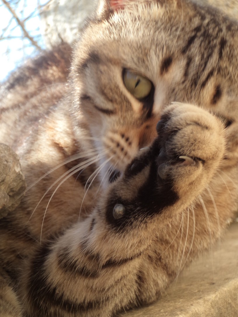 None of the other cats seemed to have a problem with Dinky; maybe it was The Cat’s maternal instincts kicking in as it was kitten season – who knows? But there were other instances of her chasing cats out of the garden – another tale follows tomorrow.
