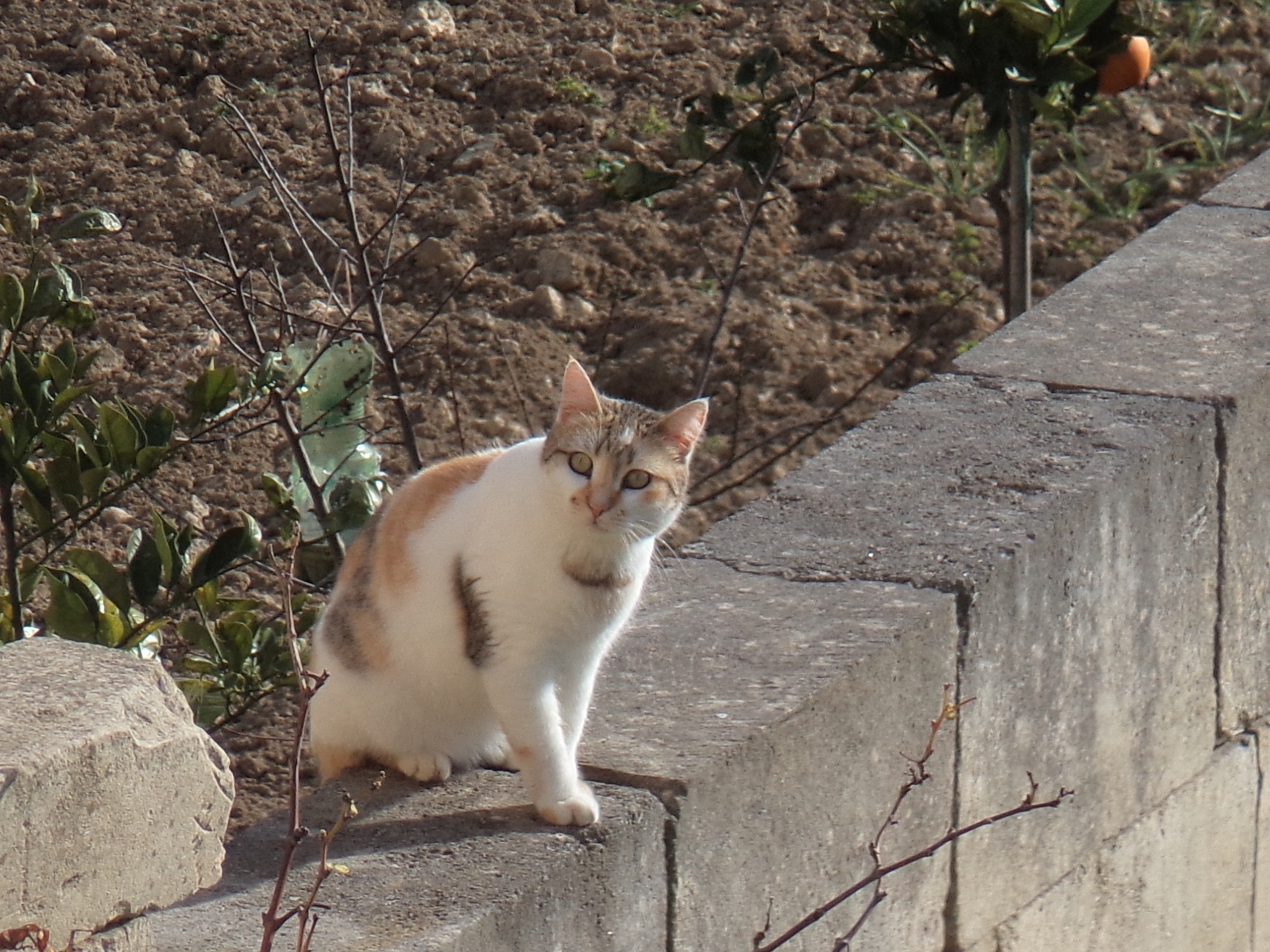 Visitor Cat – her miaow arrived a considerable time after she did. For many months she ate silently on the top of the wall, until her defences, weakened by the delights of wet food, allowed a delicate and pretty miaow to escape. Cuddles followed, accompanied by claws and teeth and more miaows.